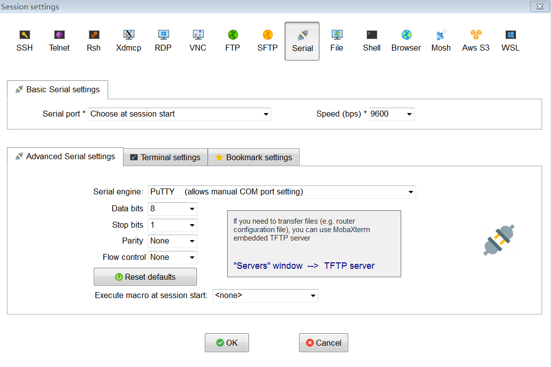 Check whether the communication parameters are correctly configured. (The third-party software MobaXterm is used as an example here.)